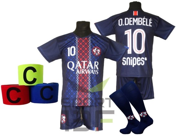 Strój piłkarski dla dzieci DEMBELE + getry + opaska - rozmiar