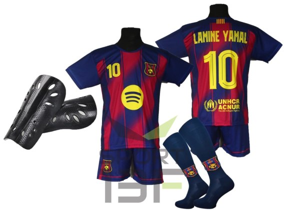 • Strój piłkarski dla dzieci LAMINE YAMAL + getry + ochraniacze - rozmiar
