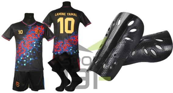 Strój piłkarski dla dzieci Lamine Yamal + getry + ochraniacze